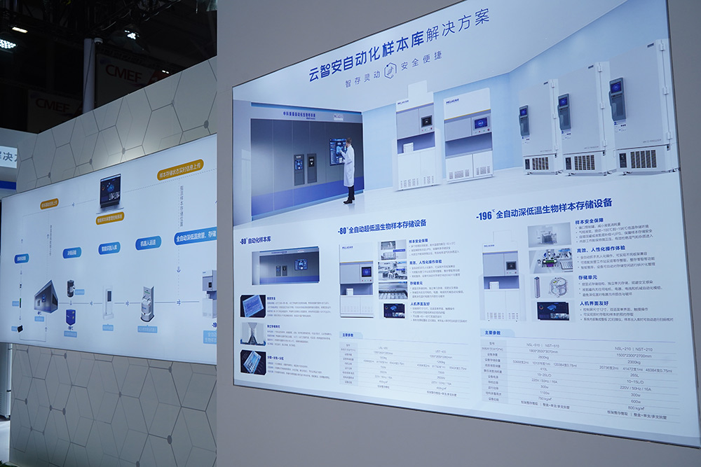 其次,隨著整合性大數據研究的興起,為滿足生物樣本庫樣本實體及相關電子數據的質量及完整性的更高要求,中科美菱創新推出云智安自動化生物樣本庫解決方案,繼發布后,在西安高博會和生物樣本庫大會活躍于大眾視野,具有智能控制、自動化樣本存取、倉儲式存儲和高度安全保障特性的生物樣本庫自動化存儲管理系統吸引了大多數用戶的目光,本次CMEF展會,中科美菱攜帶了云智安自動化生物樣本庫解決方案家族產品亮相:包含自動化-80℃冷庫,自動化-80℃超低溫存儲設備,自動化-196℃液氮存儲設備、SBS自動化凍存耗材、樣本管理系統等。自動化樣本庫不僅在國際生物樣本庫中的應用十分廣泛,也是實現轉化醫學、精準醫學的重要保證。