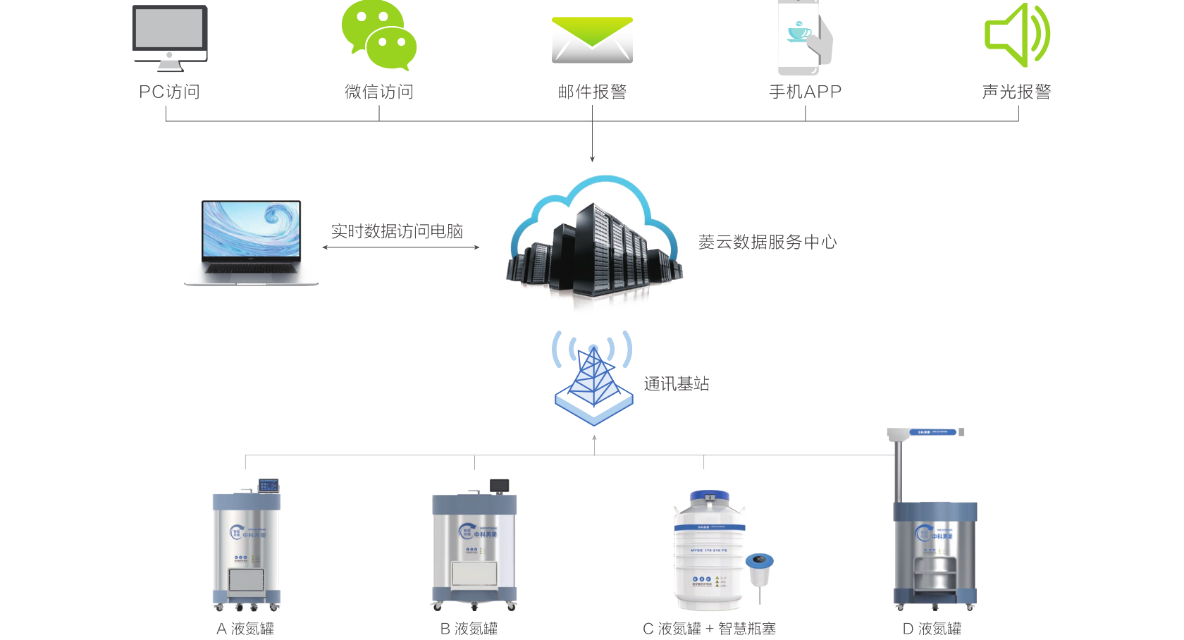 溫度、液位高精度監控,本地與遠程的雙重預警機制,通過短信、電話、微信等多維度觸達,確保任何異常都能被及時捕捉,為樣本安全筑起銅墻鐵壁。